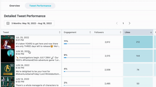 Social media is a conversation. One half is talking, and the other half? Listening. We take metrics seriously with weekly top level analytics presented in a shared spreadsheet in order to identify trends and measure growth. We dive a little deeper with monthly focuses, to test various types of content against one another and inform our upcoming planning.